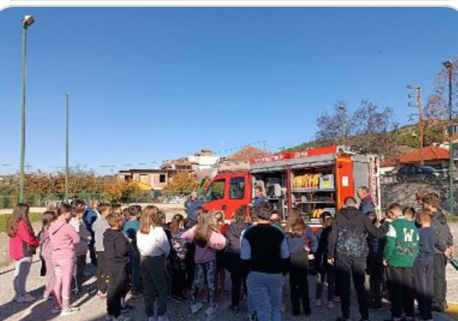 Τις τελευταίες μέρες του Νοεμβρίου 2023, είχαμε τη χαρά να υποδεχθούμε στο σχολείο μας την πυροσβεστική. Τα παιδιά άκουσαν από τους άνδρες του πυροσβεστικού σώματος πληροφορίες για την πυρασφάλεια καθώς και θαύμασαν από κοντά ένα πυροσβεστικό όχημα με όλο τον εξοπλισμό του.